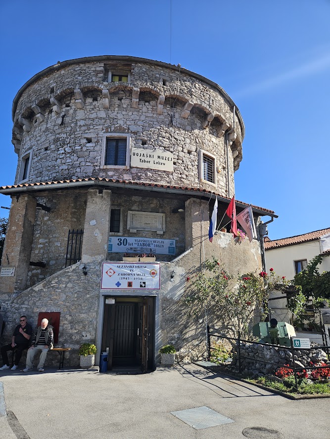 Pot smo nadaljevali do kraja Lokev, v bližini slovite slovenske kobilarne Lipica in spet doživeli nekaj izvirnega z obiskom Vojaškega muzeja TABOR skrbno postavljenega v krožnemu obrambnemu stolpu, zgrajenemu leta 1487 ki je danes kulturni spomenik lokalnega pomena v lasti občine Sežana. Izvirni najdeni in ohranjeni predmeti vojskovanja v prvi in drugi svetovni vojni so pregledno in vzporedno postavljeni med bojujočima silama, kjer nam se iz ozkih hodnikih prikazovalo resnično življenje v vojnama na bojiščih Krasa in širše.