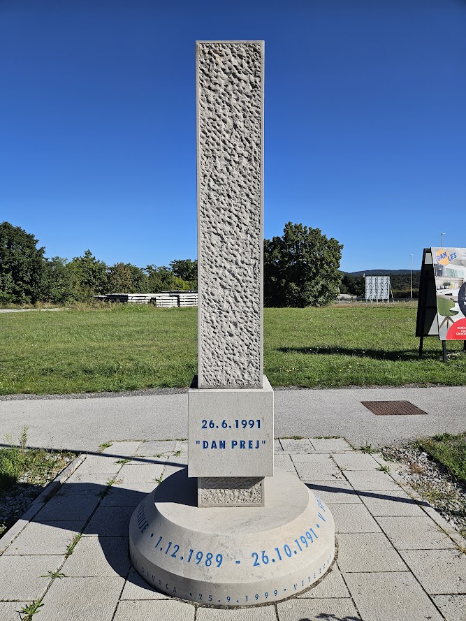Kot nam je razlagal poveljnik Drago po odličnem posredovanju organa zveze je dobil informacijo, da so enote reškega korpusa JLA pod poveljnikom generalom Čadom krenile proti mejnim prehodom na območje Sežane. Božac je, kot pravi, iskal nasvete od nadrejenih na najvišji ravni, o tem kaj je treba storiti, ampak ni dobil konkretnih nalog, razen da poskuša mirno ovirati kolone tankov. Od takrat so bolj natančno spremljali situacijo in že v prvemu stiku z enotami JLA so poskušali upočasniti kolone tankov, kar ji je uspelo in to brez streljanja in žrtev. Vse kar je poveljnik Drago Božac počel s tem namenom je bilo zastavljeno od njega in njegovih ožjih sodelavcev in to je v času, ko so krenile kolone JLA iz več smeri, bilo dragoceno za pravočasne poteze najvišjega poveljstva TO Slovenije v obrambi na kritičnih točkah Slovenije. Omenimo da je Božac leta 2001bil poveljnik 62.brigade Slovenske vojske v Vipavi in da je po upokojitvi,v mandatu 2010-2014 bil župan občine Divača, prav na področju kjer je DAN PREJ danes spomenik, a na začetku vojne je bila prva obrambna točka za ustavljanje kolone, kar se je dejansko zgodilo. Pri spomeniku smo slišali od poveljnika Božaca to zanimivo zgodbo pričevanje o izvirnemu psihološkemu vpliva na vodilne v koloni tankov JLA, da ni prišlo do zaostritve odnosov in žrtev. Ta poteza je odmevala širše in takoj v začetku vojne pomembno prispevala ugledu Slovenske vojske. Bili smo srečni in iskreno zadovoljni, da nas je na tej naši lepi poti po Krasu spremljal poveljnik, podpolkovnik in nekdanji župan DRAGO BOŽAC, ki mu se je naš predsednik Združenja dr.Igor Potočnik prisrčno zahvalil in izročil simbolično pohvalo za njegov prispevek nastajanju in razvoju Slovenske vojske.